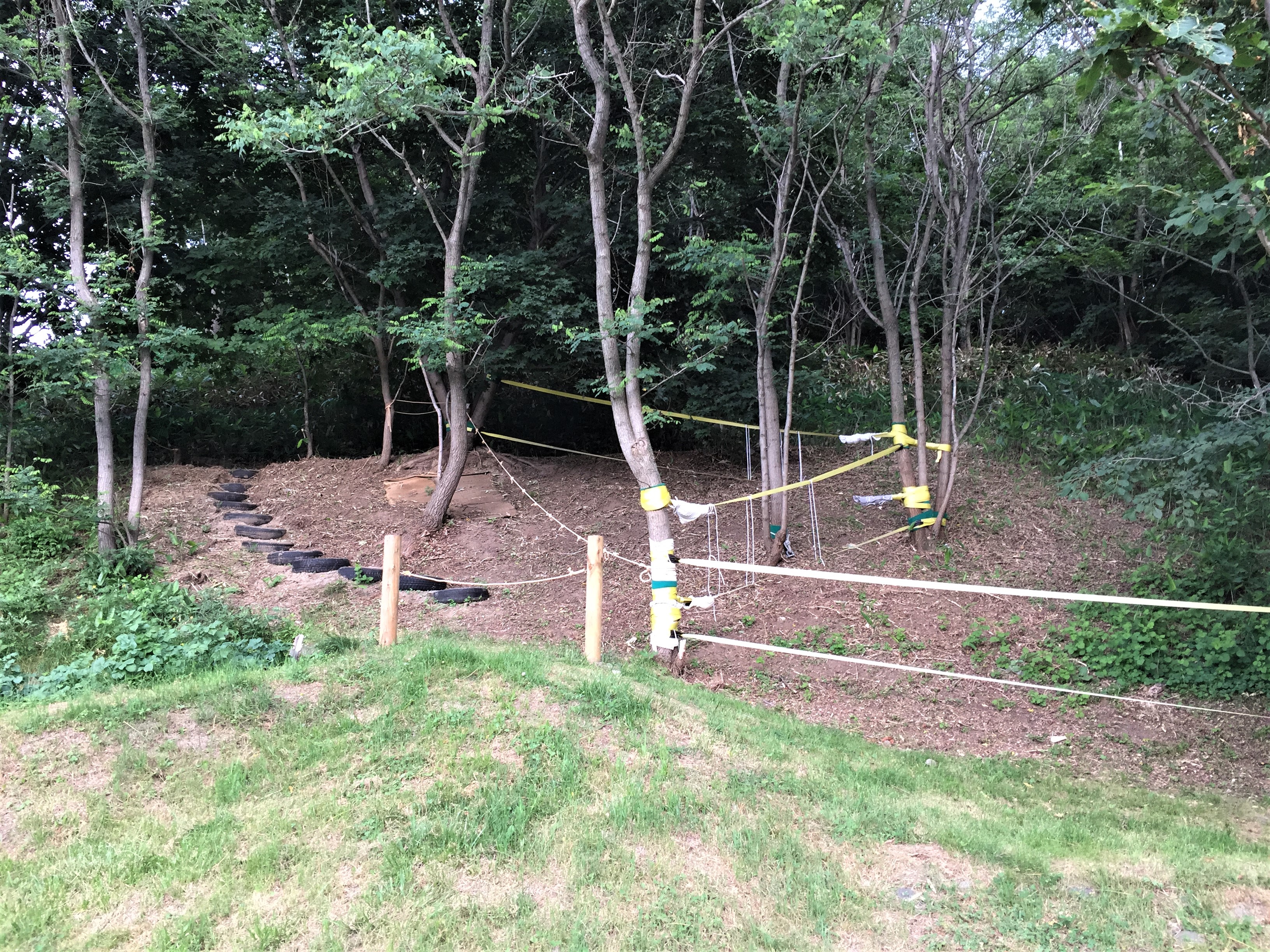 山のロープ渡り